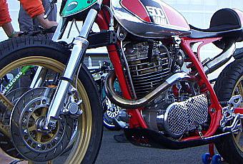 En considérant bien le machin, on se rend rapidement compte que, dans un souci de concision, il vaut mieux s'attacher à lister les pièces d'origine demeurées en place que les ajouts, changements et autres transformations. Jetez simplement un oeil à toute la partie arrière du cadre et à la forme élégante des renforts ; à cette culasse qui me semble aussi d'origine que le dernier upgrade de Pamela Anderson, au bras oscillant, à la fourche, aux freins, au tés, à la ligne d'échappement, ... A part le réservoir et les carters moteurs, je ne vois pas très bien ce qui peut rester de Yamahesque sur ce bijou.