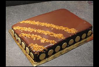 Cet entremets est composé de deux couches de biscuit au chocolat, d'une couche de croustillant au praliné, et de deux couches de mousses.