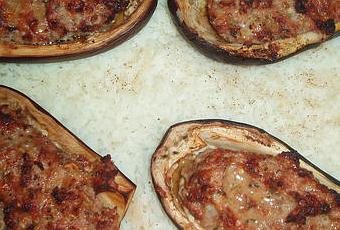 Farcir de cette préparation les aubergines, déposer les dans un plat à gratin et enfourner 30 à 40 minutes, jusqu'à ce que les aubergines soient fondantes.