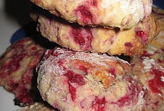 Il suffit de mettre la farine, la levure, et le sucre dans le bol de votre robot, d'ajouter le beurre, et de mélanger jusqu'au sablage, puis ajouter doucement le lait, la pâte doit être souple, plus qu'une pâte à tarte, mais pas trop tout de même, si vous voulez jetez un coup d'oeil sur la recette de base ici, vous saurez tout sur la confection des scones ! Ajoutez les framboises délicatement et former vos scones avec un emporte pièce rond d'environ 6 cm de diamètre. Pour la cuisson, c'est environ 15 mn dans un four préchauffé à 220°.