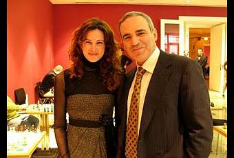 Grand-Maître International d'échecs depuis 2007, cette jolie joueuse slovène pose ici avec son idole de toujours, Garry Kasparov.