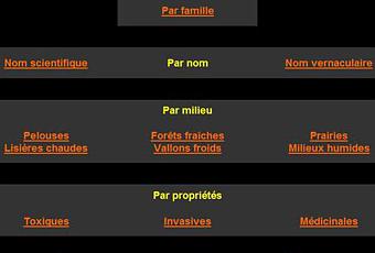 Cette page, nommée « Flore : recherche d’une espèce », est accessible depuis toutes les pages d’entrée des différentes parties du site :