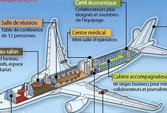 "Air Sarko One" comprend un poste de transmissions dernier cri, des installations médicales, une salle de réunion, un bureau, une chambre à coucher avec salle de bains, un système de leurres antimissiles.. Autant d'aménagements qui ne devraient pas être ouverts au public ébroicien aujourd'hui et demain lors des premiers essais eurois de cet avion classé "secret défense". Les photos des premiers essais en vol de l'A330 présidentiel sont sur le site de Paris-Normandie.