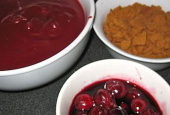 Je m'explique, pour faire ce genre de dessert, il faut : une compote très colorée (maison, il suffit de faire un mélange pommes et cerises (des griottes surgelées feront l'affaire) même quantité des deux fruits. Des spéculoos en miettes (pas trop petites), des griottes sauvées de la compote (et décongelées). Si ils ont été sages des petites billes sucrées et colorées, pour être la maman la plus géniale du monde, il n'y a pas mieux !