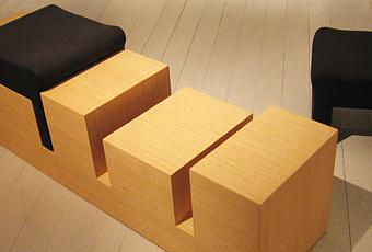 Le concept 2 tabourets, fait de bois et de cuir est actuellement exposé au Musée Paradigma de Tel-Aviv.