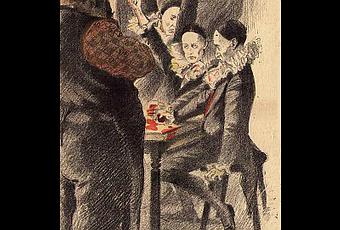 Illustration de Lubin de Beauvais pour la chanson de Saint-Gilles, Ohé, monsieur l'aubergiste, parue dans le Gil Blas illustré du 8 août 1902.