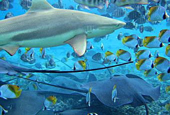 Les îles Sociétés sont un paradis pour plonger avec de nombreuses espèces de requins, de raies, de tortues, des bancs de barracudas, d’énormes balistes ou de napoléons. Mais ces espèces ne se