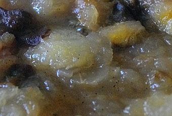 Peler les pommes et les poires, les couper en morceaux ainsi que les pruneaux dénoyautés.