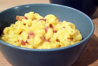 Dans une casserole faire fondre le beurre, ajouter la farine, mélanger. Verser doucement le lait, bien mélanger jusqu'à ce que le mélange épaississe bien. Ajouter ensuite le fromage, mélanger jusqu'à obtenir une sauce bien lisse. Ajouter les pâtes et le bacon, mélanger. Saler et poivrer au goût. Et voilà c'est prêt à être servit! Enjoy!