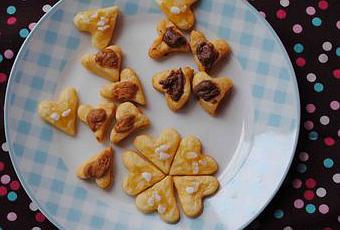 Nothing special, just small hearts made of flaky pastry and coverd with sugar.