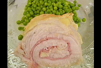 - Poser une 1/2 tranche de jambon sur chaque escalope puis poser un morceau de Brie. Poivrer.
