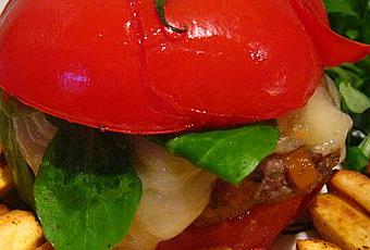 J'ai décidé de faire un burger sans pain et de le remplacer par une grosse tomate. Certain vont me dire que c'est un sacrilège et qu'un burger sans pain ce N'EST PAS un burger!
