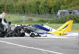 L'incident s'est produit le dimanche 9 mai à l'aérodrome de North Weald en Angleterre, et les pompiers sont arrivés presque immédiatement dans une voie adjacente comme il est venu par une course de dragsters.