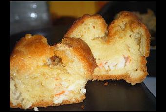 Dans un saladier, mélanger la farine, la levure et les oeufs battus. Saler et poivrer. Ensuite, ajouter le lait et l'huile puis quand le mélange est bien homogène, ajouter les bâtonnets de crabe coupés en morceaux et le fromage râpé.