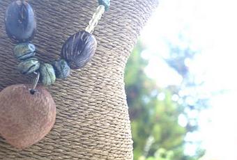 Je suis de retour avec 2 nouvelles créations. Ci-dessus un collier exotique avec des graines tropicales d'Amazonie et des perles lampwork, les fameuses perles dont je vous avais parlé sont arrivées. Plus d'infos et de photos en cliquant sur ce lien : collier exotique vert et graines tropicales.