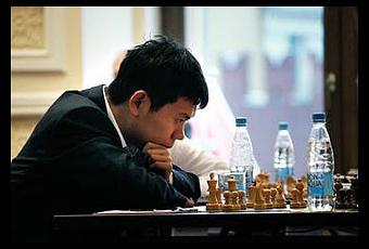 Ci-contre, le numéro 2 des échecs chinois, Wang Hao (2727) est désormais coleader du tournoi, après avoir battu hier l'Israélien Boris Gelfand.