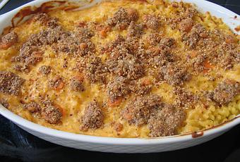 Les égoutter et les mélanger avec la sauce à la mimolette dans un plat à four.
