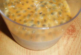 Au moment de servir, vider la pulpe des fruits de la passion et verser sur les verrines.