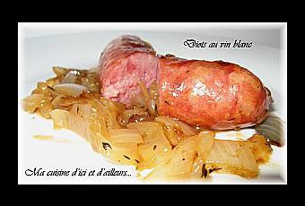 Pour 4 personnes, il vous faut: 4 diots 25 cl de vin blanc 1 cuillère à soupe de farine 2 oignons 1 échalote Thym, laurier