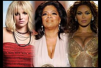 1.Oprah Winfrey - 324 millions de dollars (235 millions d'euros)2.Beyoncé - 89 millions de dollars (64 millions d'euros)3.Britney Spears - 65 millions de dollars (47 millions d'euros)4.Lady Gaga - 64 millions de dollars (46 millions d'euros)5.Madonna - 60 millions de dollars (43,4 millions d'euros)6.Sandra Bullock - 59 millions de dollars ( 42,9 millions d'euros)7.Ellen DeGeneres - 56 millions de dollars (40 millions d'euros)8.Myley Cyrus - 48 millions de dollars (34,8 millions d'euros)9.Taylor Swift - 46 millions de dollars (33,3 millions d'euros)10.Judge Judy - 46 millions de dollars (33,3 millions d'euros)