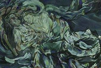 La toile ci-dessus est un hymne de Kokoschka en l’honneur d’Alma, de leurs brèves et violentes amours. Un homme gît au centre du tableau, entraîné par un tourbillon, scrutant d’un regard incertain le lointain, la femme la peau nacrée, se blottit pleine de confiance sur la poitrine de l’homme. Témoignage aussi de ce que la jeunesse de cette époque voit venir les catastrophes menaçantes.