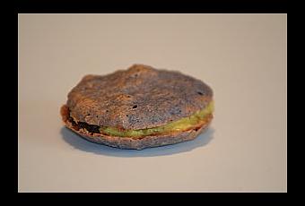 Comme il faut toujours positiver ses échecs parait-il, j'attire votre attention sur ce macaron. Regardez le bien. La page 25 de mon livre décrit tous les défauts que peut avoir un macaron: pas rond, pas lisse, pas brillant, pas homogène, pas de colerette... Je ne suis pas certaine que n'importe qui réussisse à réunir toutes ces caractéristiques dans un seul petit gateau. Je vais même plus loin, ce macaron est un véritable cas d'école. L'illustration parfaite de ce à quoi un macaron ne doit pas ressembler.