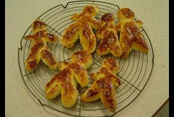 de long. Inciser ces pâtons au ciseaux afin de former la tête, les bras