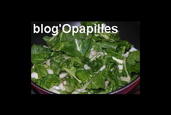 Faire cuire à feu assez vif durant 10mn sans cesser de remuer, ajouter les blettes, l'ail haché, saler et poivrer, réduire le feu, couvrir et faire cuire à l'étuvée durant 15mn en remuant de temps en temps.