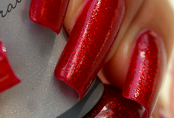 Le fameux "Ruby Pump" de China Glaze mais façon Orly ! Moi qui déteste le rouge - qui rajoute au moins 10 ans à mes mains - et bien celui là j'adore il est magnifique, tout plein de paillettes et ne fait pas forcement Noël je trouve, il est rouge clair rempli de paillettes rouges. 3 couches - peut se porter en une couche sur une autre base couleur - séchage très rapide - Il terni en séchant (comme beaucoup de glitters) il mérite du top coat pour raviver tout ça. Ici photos sans top coat.