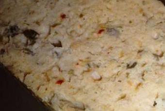 Ensuite, on mixe avec du fromage blanc, des œufs, de l'aneth, du sel, du poivre, de l'ail et une pincée de piment d'Espelette en poudre.