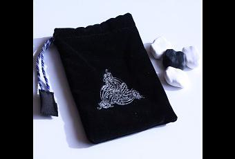 Il s'agit de matériel de qualité puisque le sac est en velours, réalisé à la main, et brodé d'un motif celtique.