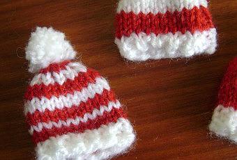 En ce dimanche frisquet j'avais envie de vous montrer quelques unes de mes réalisations au tricot. Quelques minis bonnets qui serviront pour décorer le sapin.