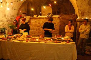 Si la boisson ne manquait pas, les participants pouvant eux même aussi apporter un bouteille à faire déguster, la nourriture n'était pas oubliée : un imposant buffet préparé par Quartier Nature était proposé aux convives.