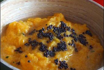- Verser le mélange sur la purée de potiron au yaourt et placer au réfrigérateur.