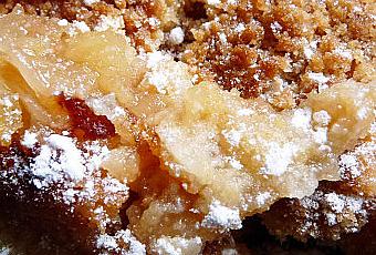 Dans un plat à gratin répartir la moitié des miettes au fond, mettre les pommes et finir avec une couche de miettes et faire cuire 40 mn jusqu'à légère caramélisation et voilà ...... c'est tellement bon .....