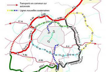 Ce projet de l’Atelier international du Grand Paris (AIGP) vient s’ajouter aux deux projets actuellement en concurrence : celui de l’Etat (une double boucle de métro automatique de 155 km autour de Paris) et celui de la région et du syndicat des transports d’IdF, le Stif (une rocade de métro en proche banlieue baptisée Arc Express).