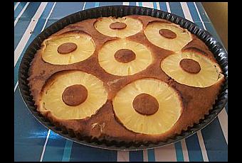 1 boîte d'ananas en tranche, réserver le jus pour rajouter sur le gâteau.