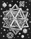 Dans la gravure sur bois "Etoiles" de Maurits Cornelis ESCHER , célèbre dessinateur et graveur néerlandais (1898-1972) ,figurent ces différents polyèdres, certains s'interpénétrant.