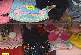 Afin de bien protéger leurs fragiles coussinets, voici des belles chaussettes colorées que vous assortirez avec un joli bonnet à pompon ( chapka) assortie à l'écharpe avec incrustations de strass.