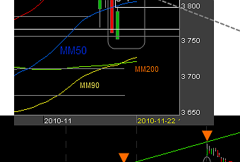 Tout comme vendredi, au cours d'une séance également exempte de publications statistiques, l'incapacité des acheteurs à tenir le mouvement s'est soldée par une dérive baissière en direction du gap du 18 novembre entre 3798 et 3822, partiellement comblé en clôture.