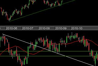 En terme de retracement, les cours en sont précisément au même stade que le 4 octobre dernier sur 3640 lors de la formation du drapeau central, en consolidation de la première jambe de hausse (dernier graphique)