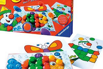 Mon Lutin n'est ni du genre artiste, ni du genre patient, mais c'est plutôt un brutus en force et surtout un vrai rebelle! Alors le Colorino, au pire, il fait des petites tours avec, au mieux, il rempli les dessins avec les jetons de couleurs, mais pas les bonnes. Vous allez me dire, ce n'est surement pas un jeu fait pour lui, peut être, n'empêche il me le réclame souvent. Parce que même s'il détourne les jetons, ben, il s'éclate quand même avec et s'imagine de nouveaux jeux, comme fabriquer des châteaux ou des petits trains, bref, il développe son imagination.