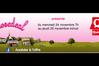 4ème marque a tenté le nouveau concept du numéro un de la vente privée, Quick propose pour 6€ de bénéficier d’un bon d’achat de 12€ à dépenser dans un des 85 restaurants Quick participants jusqu’au 19 décembre.