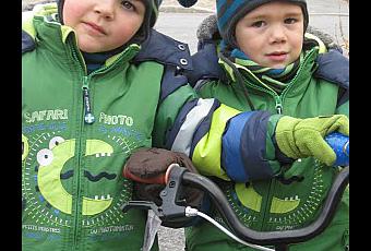 Voici une photo de fiston et de P'tit Tom, avec oui, oui, vous avez bien vu, le même manteau d'hiver et des accessoires identiques... Discutable, mais vraiment mignon, non?