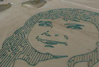 Un visage d'enfant réalisé en panneaux solaires dans le delta menacé del Ebro en Espagne.