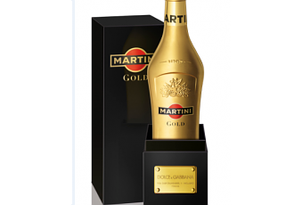 Apéritif italien à base de vin, Martini Gold Dolce & Gabbana est à base de bergamote, orange amère, citron, amande et orange, safran, cristal de myrrhe d’Éthiopie, gingembre et poivre.