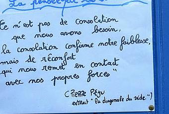 ".../...Mon arrière grand-père prétendait que, lorsque tout va mal dans notre vie, il suffit certaines nuits de lever les yeux dans le noir, pour découvrir, exactement au-dessus de notre tête, une étoile un peu plus grosse et brillante que les autres: la fameuse étoile du réconfort. On la fixe un moment: son seul éclat nous donne une énergie nouvelle. "Ce n'est pas de consolation que nous avons besoin disait-il, la consolation confirme notre faiblesse, mais de réconfort qui nous remet en contact avec nos propres forces." ../..."