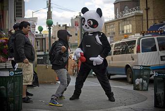 L’artiste américain Nate Hill a créé un projet hors du commun, « Hit the panda » . Il parcourt les rues de New York et invite les gens à le frapper pour se libérer des émotions négatives. Il doit bien se faire lincher quand même x) , mais l’idée est bonne ^^ .