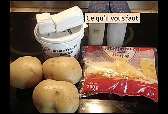 . Garnir les pommes de terre de préparation et saupoudrer de gruyère râpé.