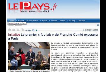 « Le premier « Fab Lab » (contraction de fabrication et de laboratoire) vient de voir le jour dans le petit village de Biarne, dans le Jura. Il exposera le 9 décembre prochain à Paris.